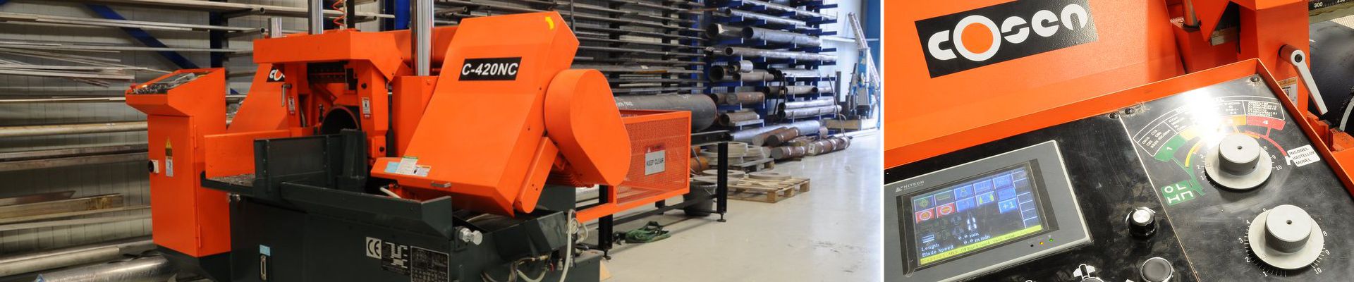 De Cosen C-420NC zaagmachine zaagt stalen buizen met een diameter tot 420 mm. Dankzij het automatische overpaksysteem is deze machine in staat geheel autonoom buizen te verzagen tot segmenten van vooraf ingestelde lengten.